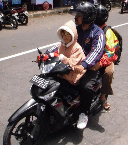 Was soviel heisst wie "Die Strasse hat soviele Spuren wie sie breit ist" und "Achtung, Mopeds von vorne, hinten, rechts und links kommend"