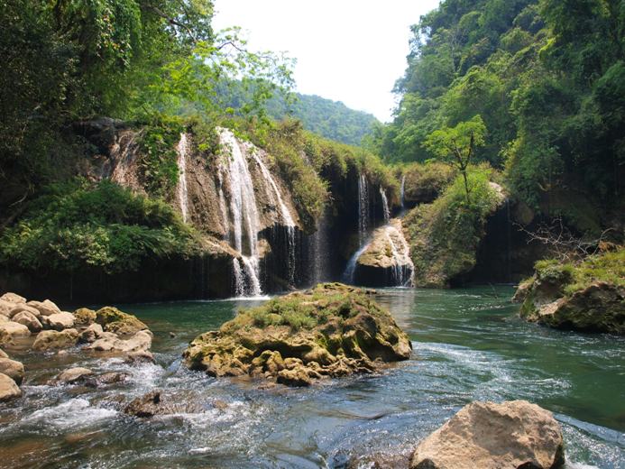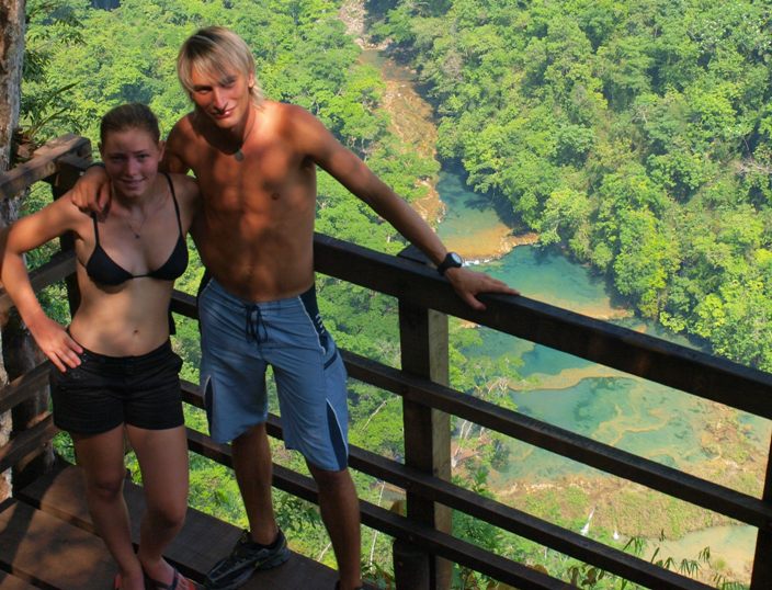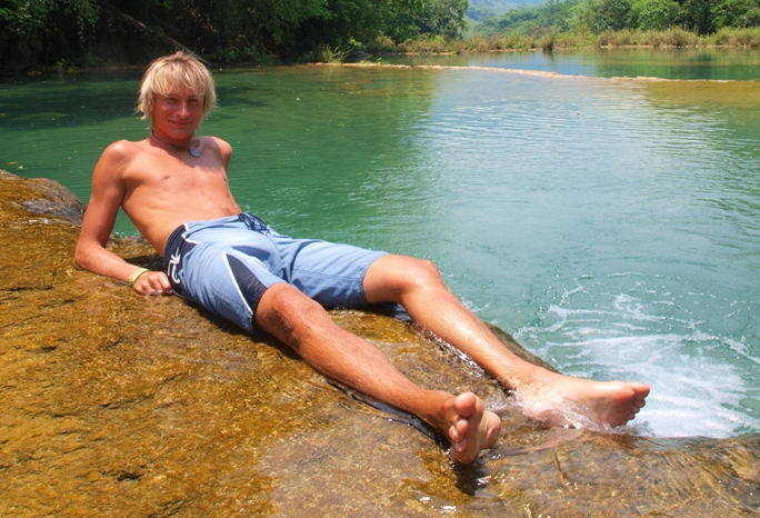 Flores ist cool, aber gibt nicht allzu viel zu tun dort - Hotspot war sowieso das Hostel Los Amigos! :) Ein paar Bars, Restaurants und halt die tolle Lage - umgeben vom See. Die tolle Idee, bei Sonnenuntergang zur Insel zu schwimmen, wird mir in Erinnerung bleiben - eh ned weit :) - ja, Fotos gibt's keine von dort, deswegen gleich weiter nach Semuc Champey. Ein Fluss, der durch Gestein in einen oberirdischen und einen unterirdischen Teil geteilt wird - und viele "Pools" zum Baden bietet!
