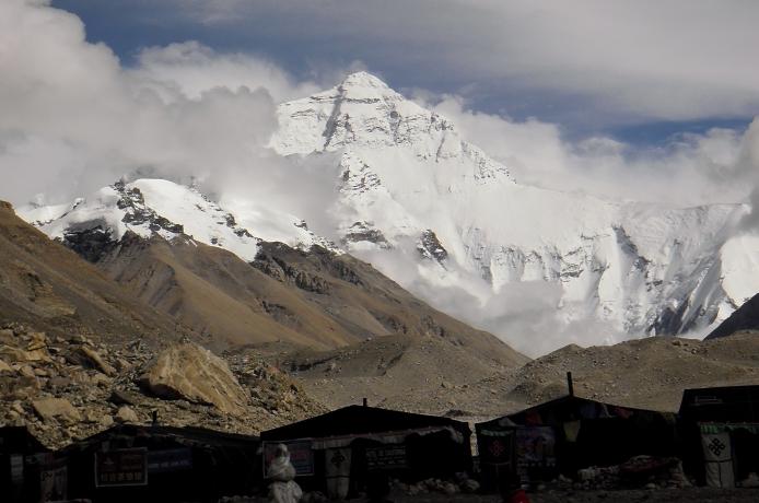 Zeltstadt des Everest Base Camps auf ueber 5000 Metern im Vordergrund